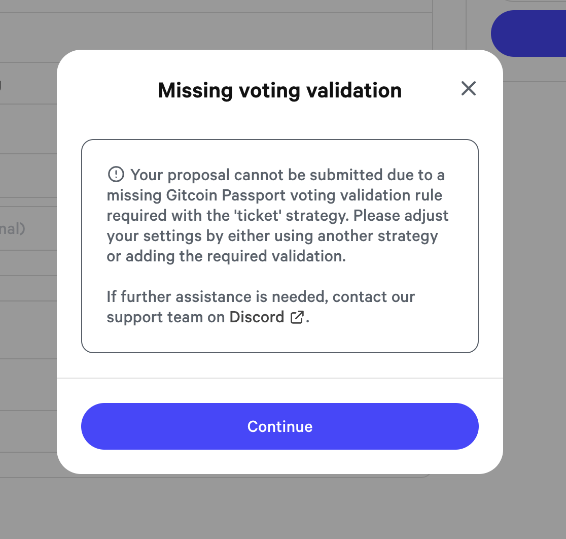<summary>Your proposal cannot be submitted due to a missing Voting Validation rule required with the "ticket" strategy. What does it mean?</summary>