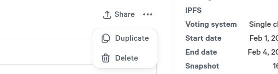 If you are an admin of the space or proposal’s creator you can delete the current proposal by clicking `Delete` on the proposal’s page: