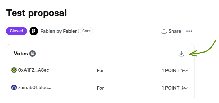 Go to the proposals page and click the download icon to get a CSV file. You can open it directly in excel or import it in the Google Sheets.
