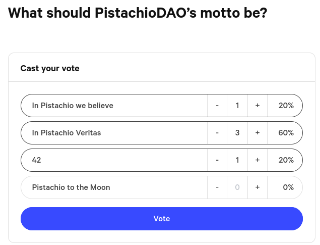 :point\_right: [**Try it yourself!**](https://snapshot.org/#/pistachiodao.eth/proposal/0x21f64875abbca71762a980efae43ab62b546d54f19a208d0e61a5d7cee571a35)