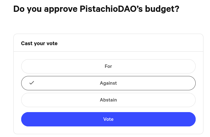 :point\_right: [**Try it yourself!**](https://snapshot.org/#/pistachiodao.eth/proposal/0xf93f1ac80e22cc930b1eef1d20bd34671ccc33b88b04695479c9de364451d77f)