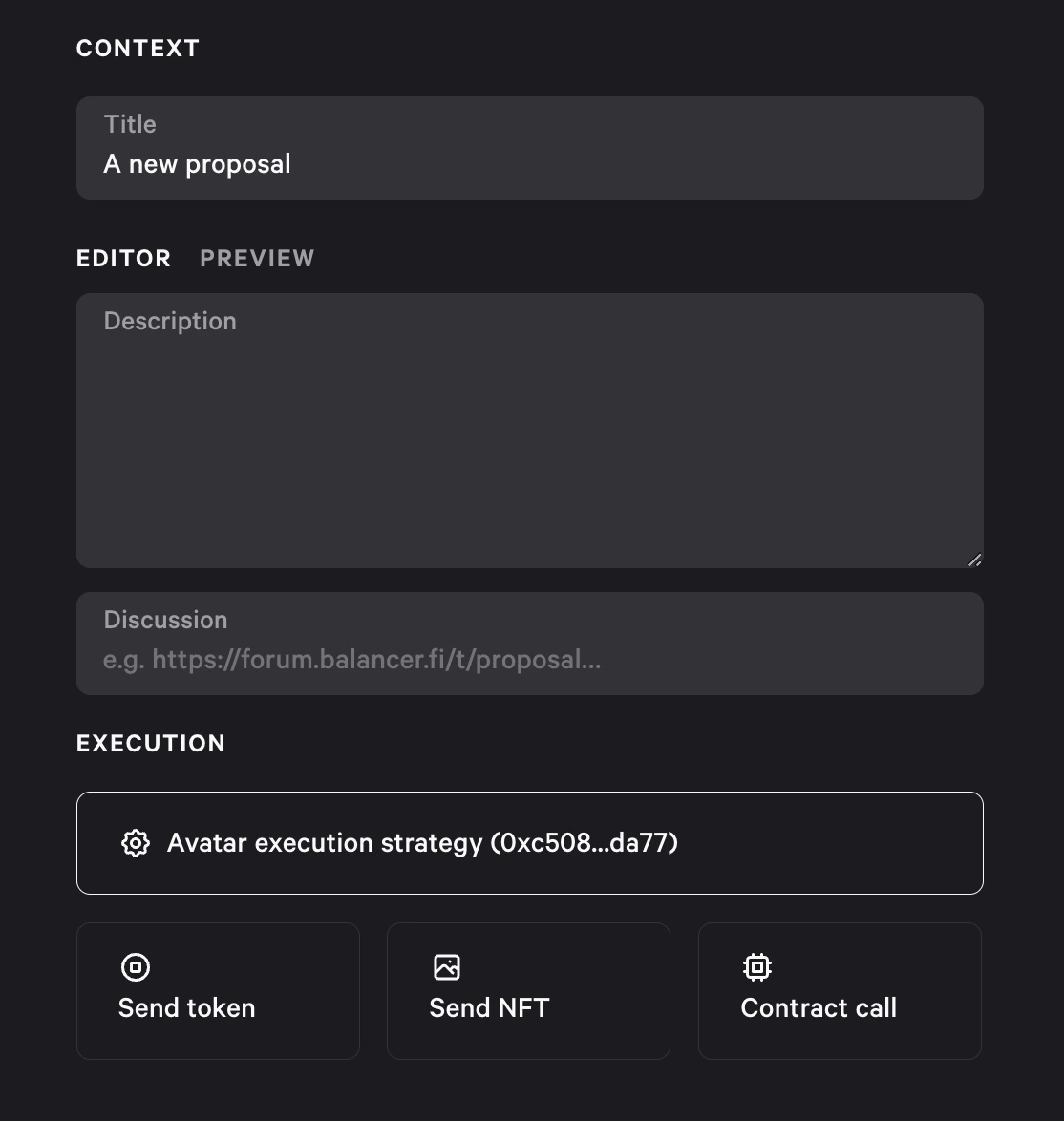 Define what should happen if the proposal passes by choosing one of the execution options: