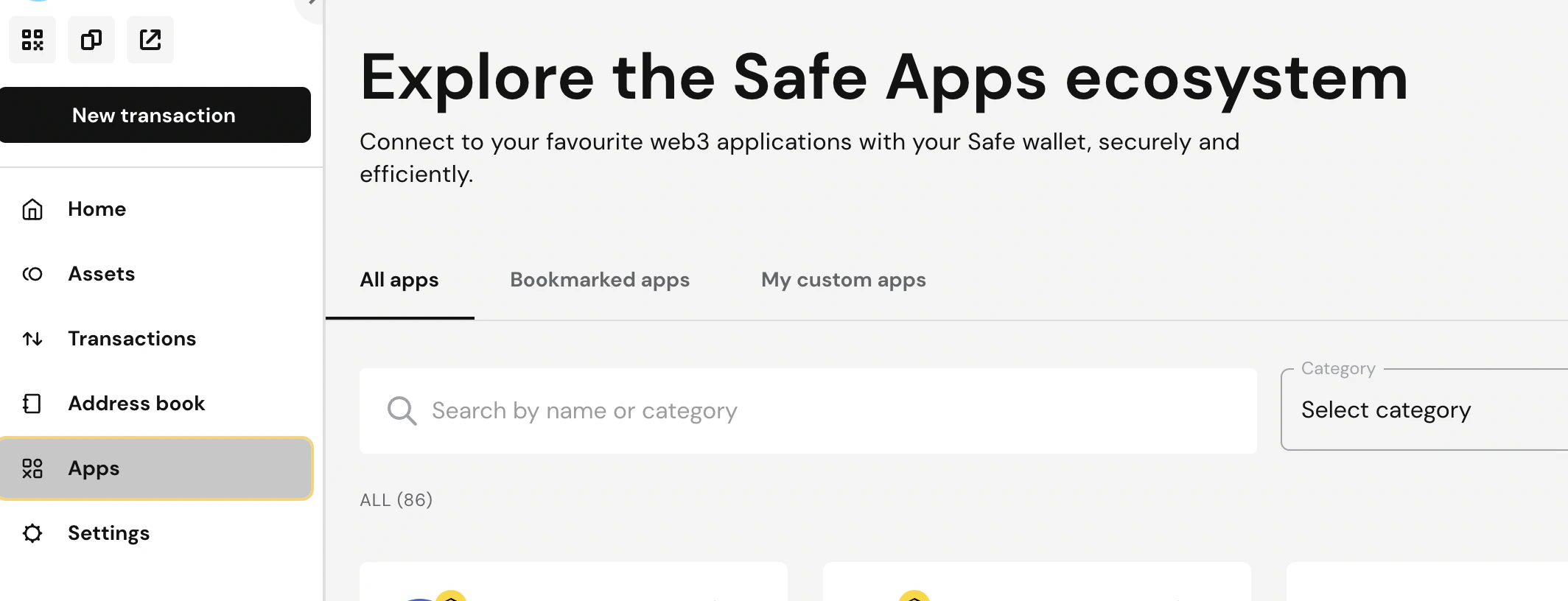 Click theApp tab in the sidebar to open the list of available Safe applications.