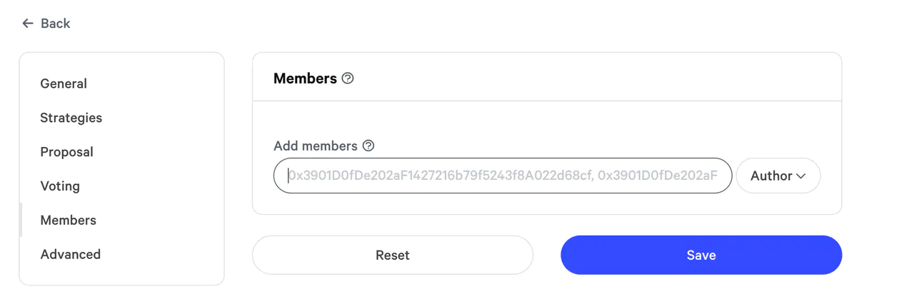 Once added as **Authors** in the **Members** tab in the space settings they will surpass the validation process and will be able to create new proposals in the space.
